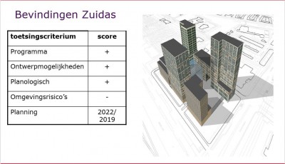 In een team van professionals wordt onder de verantwoordelijkheid van Vast Janszen een business case opgesteld. Hierin zijn percelen geselecteerd die een ontwikkelpotentie hebben van ca. 80.000 m2 voor herhuisvesting. Met aanvankelijk vijf locaties wordt aan de hand van massastudies een business case uitgewerkt. Twee locaties zijn favoriet en realistisch: het Marineterrein en de Zuidas. Aanvullende stedenbouwkundige studies vallen gunstiger uit voor de Zuidas. De beslissing valt medio 2010: Voor de rechtbank en het openbaar ministerie komt er nieuwbouw op de Zuidas. Het stedenbouwkundig plan is nader gespecificeerd, het bestemmingsplan is gewijzigd en een intentie overeenkomst met de gemeente Amsterdam gesloten.