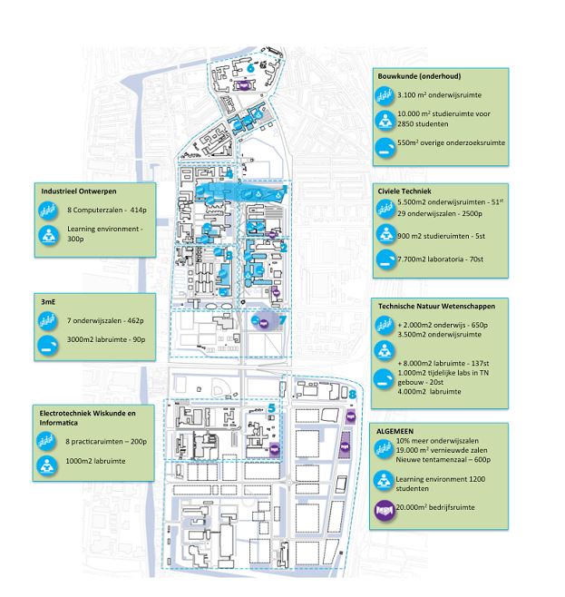 In de bestuurlijk complexe omgeving van professoren, decaan, het College van Bestuur, Universiteitsdiensten, Onderwijs en studentenzaken, FMVG en derden die ruimte huren bij de faculteit CiTG, is o.l.v. Vast Janszen een projectplan gemaakt. Voorgesteld is de faculteit in delen te renoveren. De laboratoria zijn hierbij als aparte functie onderscheiden en zoveel als mogelijk geconcentreerd in de Stevinhallen, waar zich de specifieke ruimten bevinden. Deze zijn uitstekend geschikt voor faculteit gerelateerd onderzoek. Hierdoor komt meer ruimte vrij in het hoofdgebouw voor collegezalen in verschillende formaten, studieruimtes en vergaderruimten. In lijn met de Campusvisie, die in 2013 tegelijkertijd is ontwikkeld, is een brug geslagen tussen beleid en uitvoering. Langzaam krijgen alle partijen weer vertrouwen in de renovatie.
